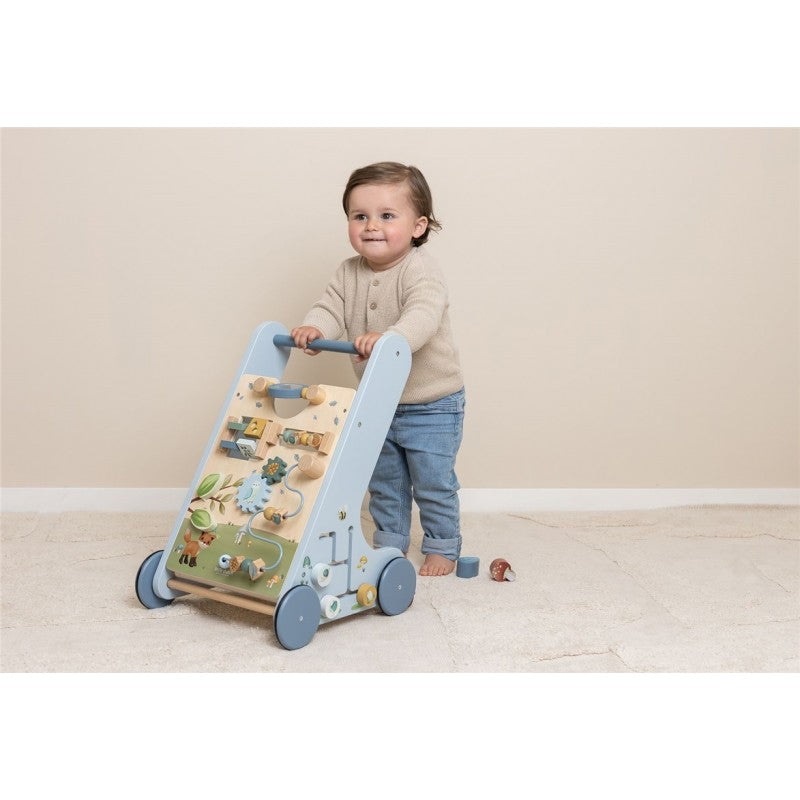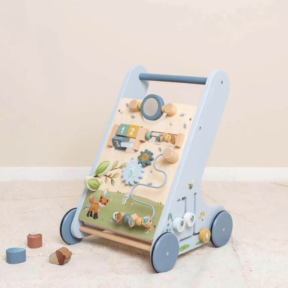 ¡Camina, juega y aprende! Gracias a su diseño, este andador de madera es adecuado para ayudar a los niños que están casi a punto de dar sus primeros pasos.