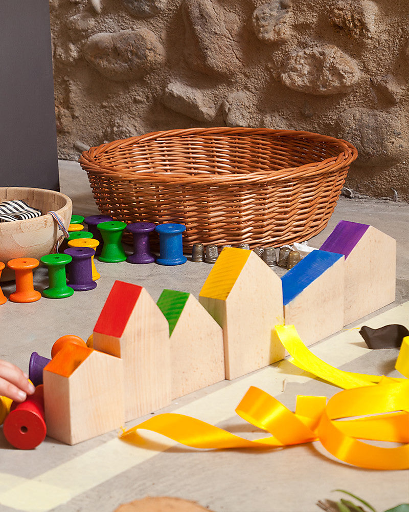 6 casas de distintas formas y colores de madera, para crear tu mundo imaginario.