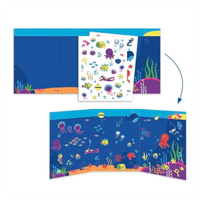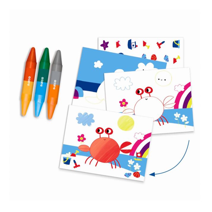 Este juego de 6 actividades de Djeco con temática del mar brinda horas de entretenimiento, dando rienda suelta a la imaginación y creatividad de los más pequeños, además de mostrarles distintas técnicas artísticas.