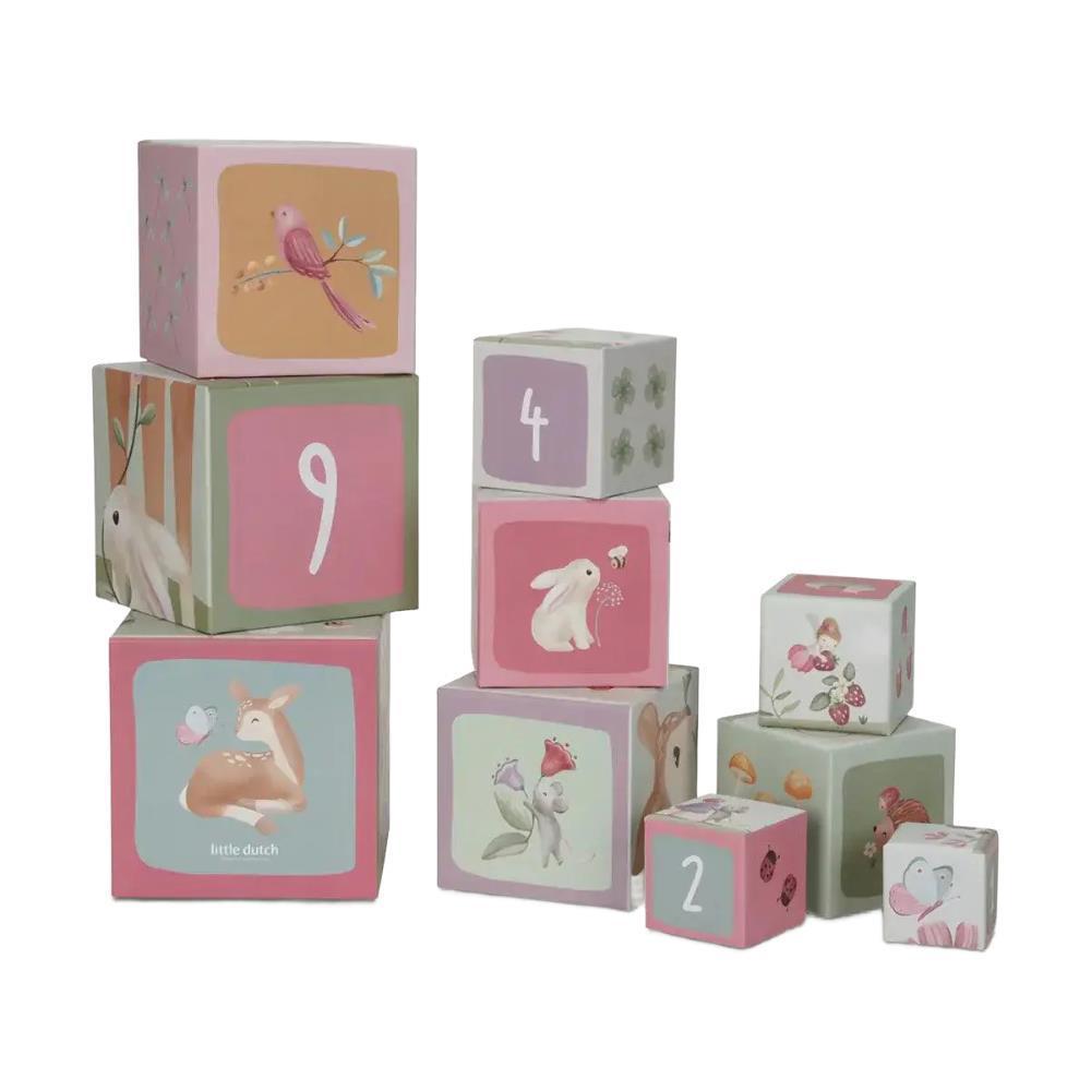 Los cubos apilables de Little Dutch se pueden apilar verticalmente para hacer una torre alta, colocar horizontalmente para aprender sobre los tamaños o insertarlos uno dentro del otro como las muñecas rusas.