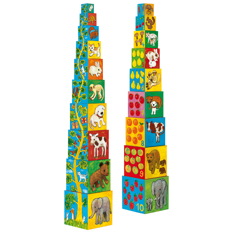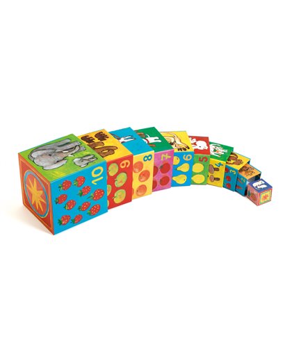 10 Cubos apilables. Primeros encajables y apilables, de grandes dimensiones, para los más pequeños/as de la casa.