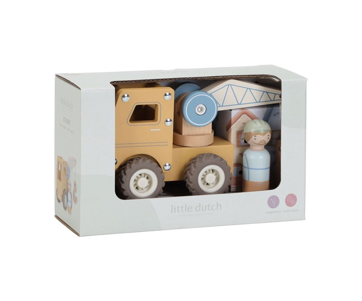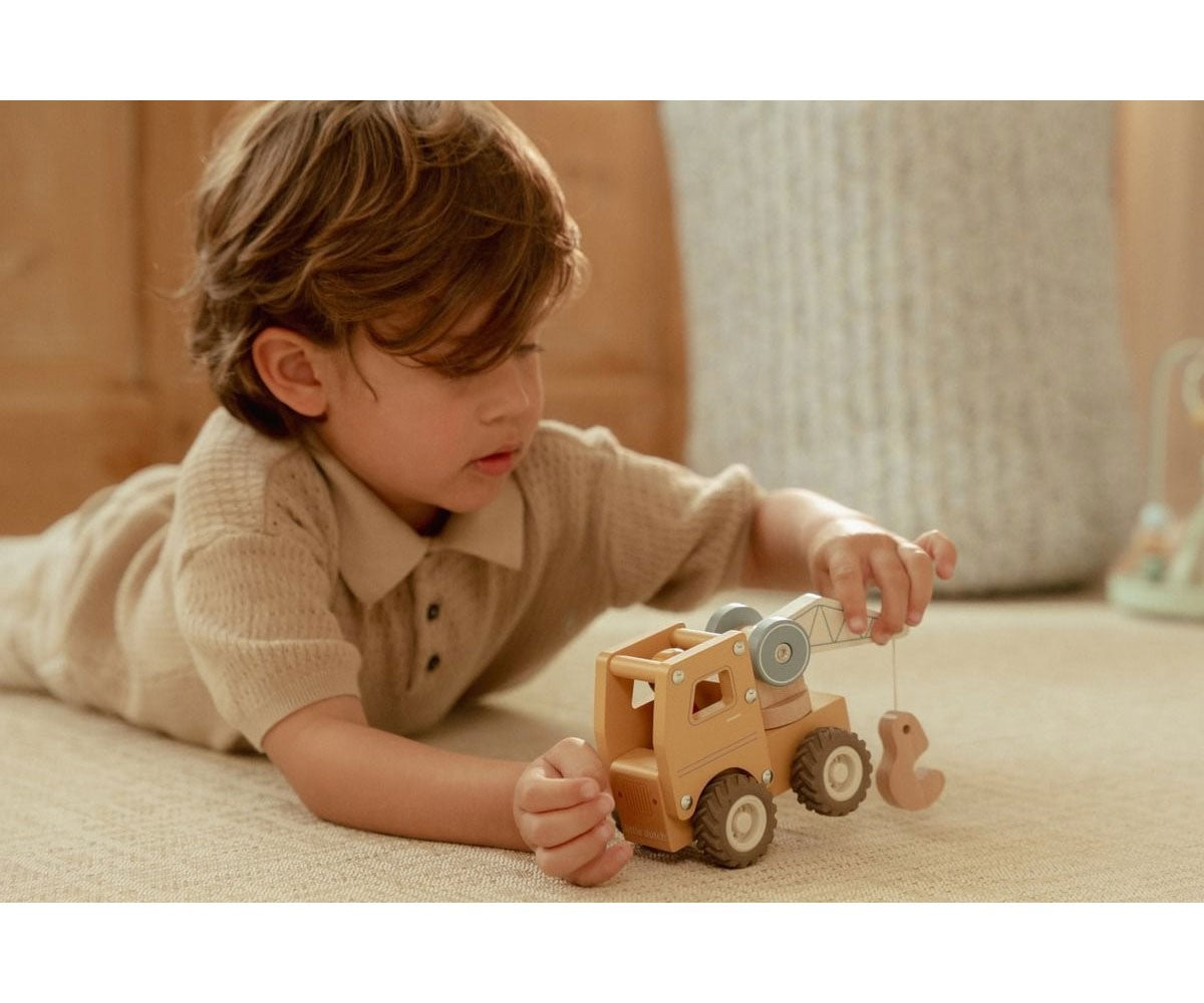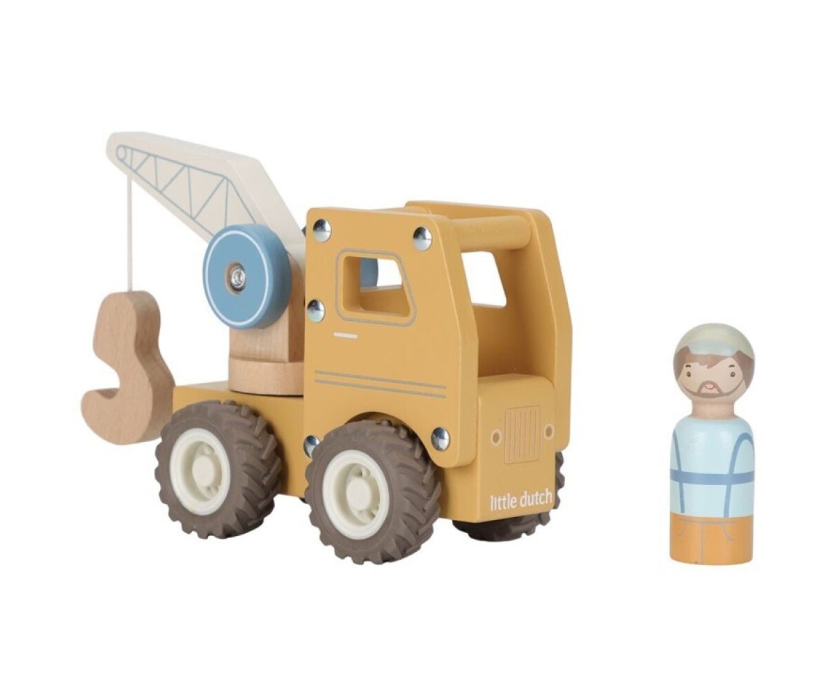 El camión grúa de madera de Little dutch es perfecto para los pequeños constructores que adoran levantar y mover cargas pesadas.