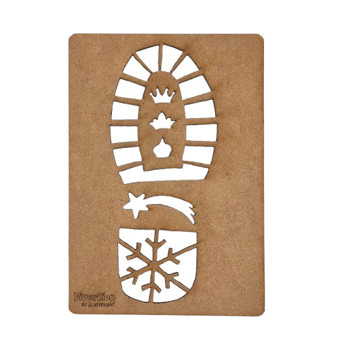 La plantilla está fabricada en madera de 2.5 mm de grosor. Es resistente, duradera y podrás reutilizarla cada año. Sus medidas son 23 x 16 cm, y el tamaño de la huella resultante es de unos 21 x 9 cm, perfecta para simular la suela de una gran bota real.