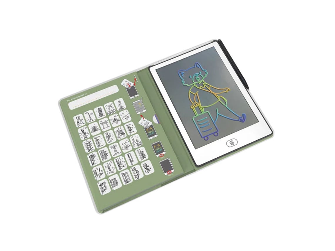 Se trata de una tableta de dibujo con pantalla LCD, que incluye 30 ilustraciones transferibles y existe en 7 temas.