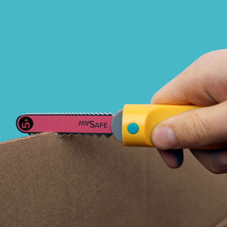 La mini sierra de Makedo te permite serrar cartón de forma segura.