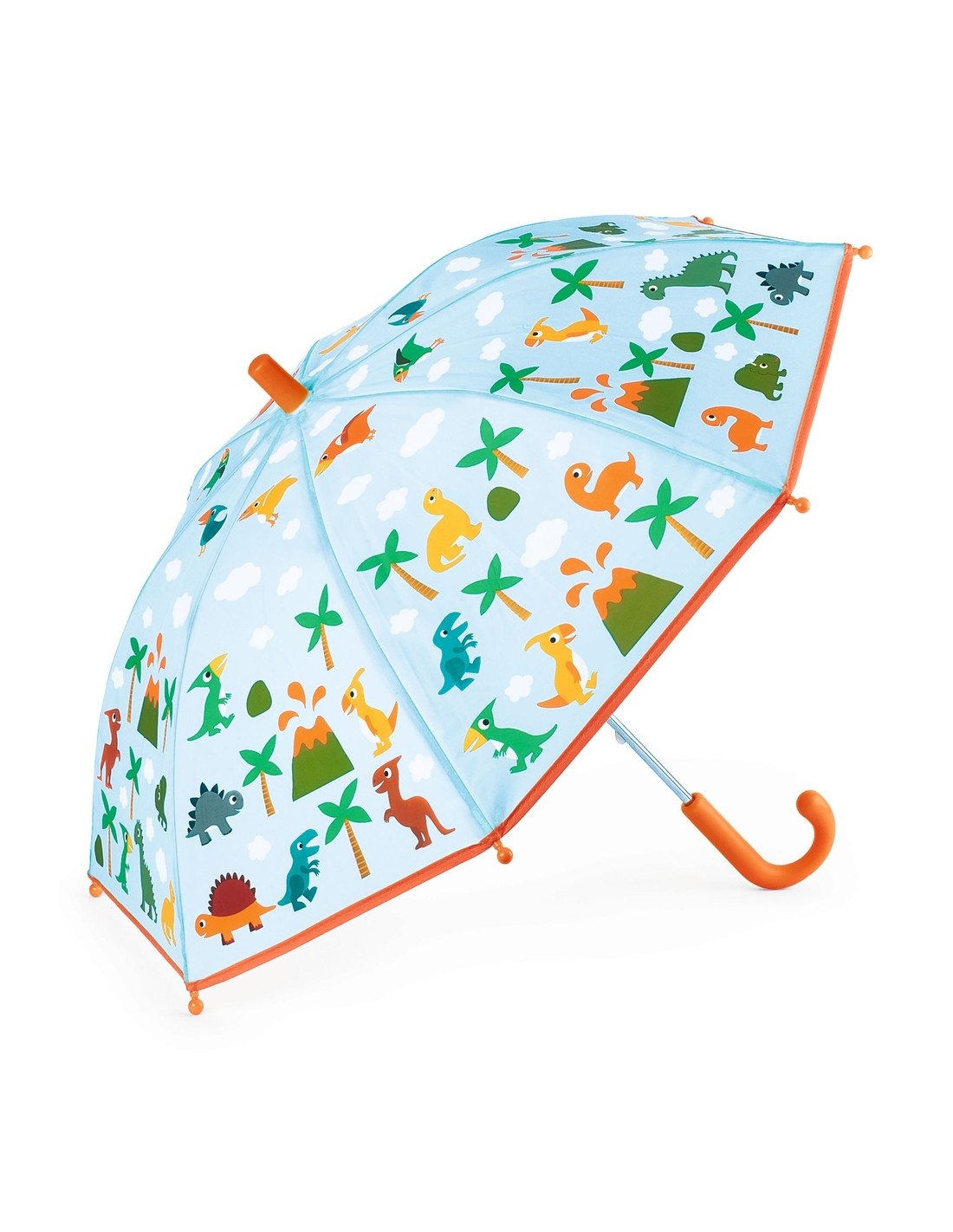 ¡Aquí tienes un adorable paraguas con ilustraciones de motivos de dinosaurios para alegrar los días de lluvia! Su pequeño tamaño está adaptado para peques a partir de 3 años. Disfrutarán teniendo su propio paraguas, como los mayores, y podrán abrirlo y cerrarlo con total seguridad gracias al sistema antipellizcos para los dedos.