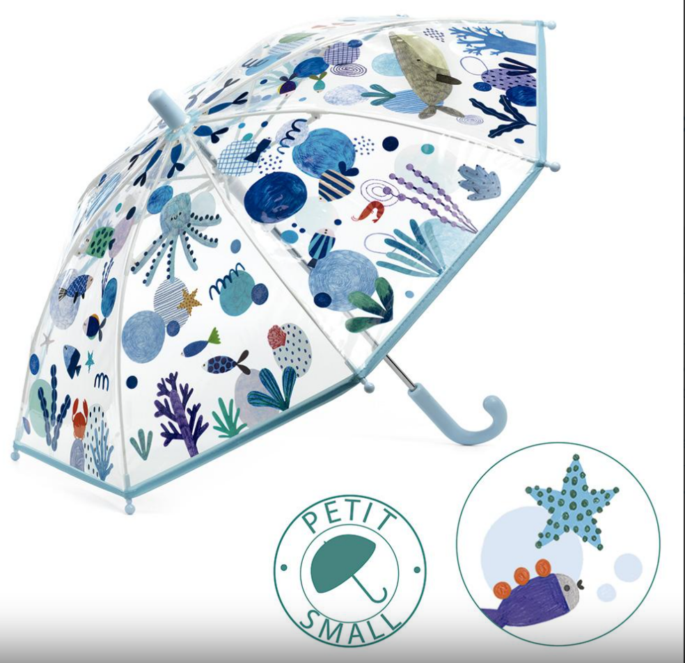 ¡Aquí tienes un adorable paraguas con ilustraciones de motivos del mar para alegrar los días de lluvia! Su pequeño tamaño está adaptado para peques a partir de 3 años. Disfrutarán teniendo su propio paraguas, como los mayores, y podrán abrirlo y cerrarlo con total seguridad gracias al sistema antipellizcos para los dedos.