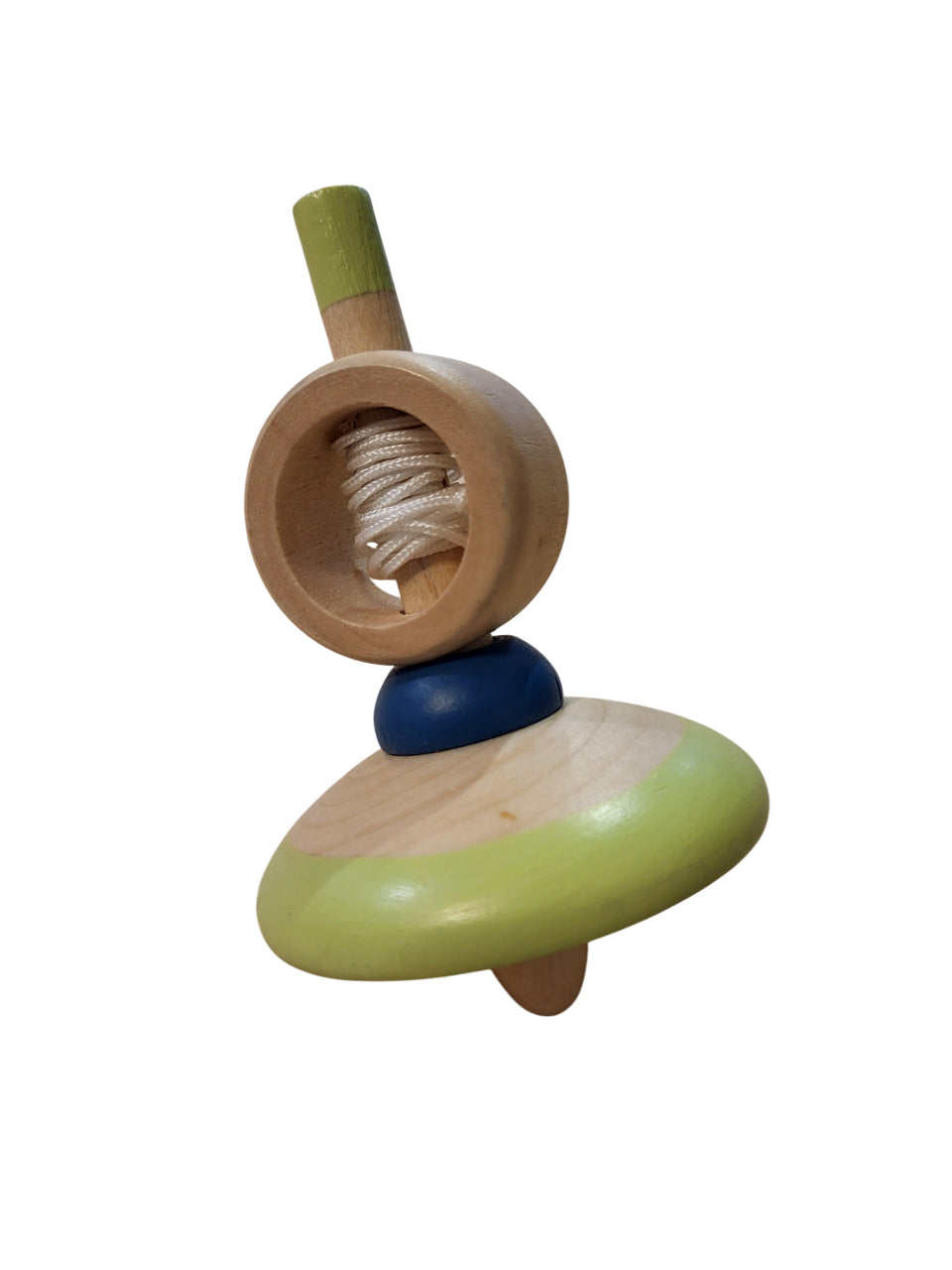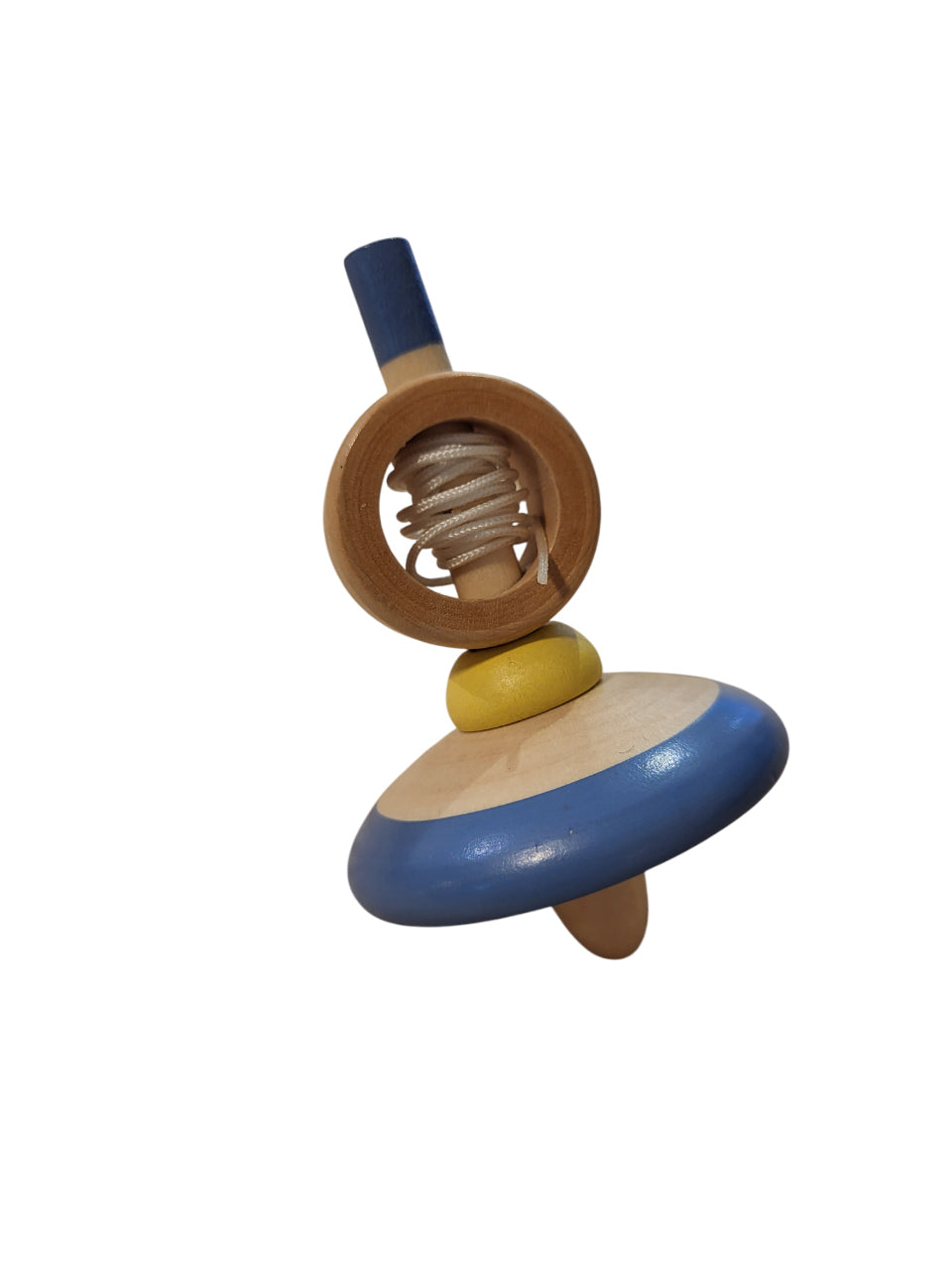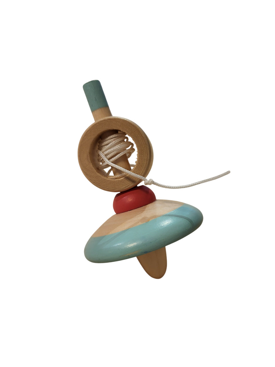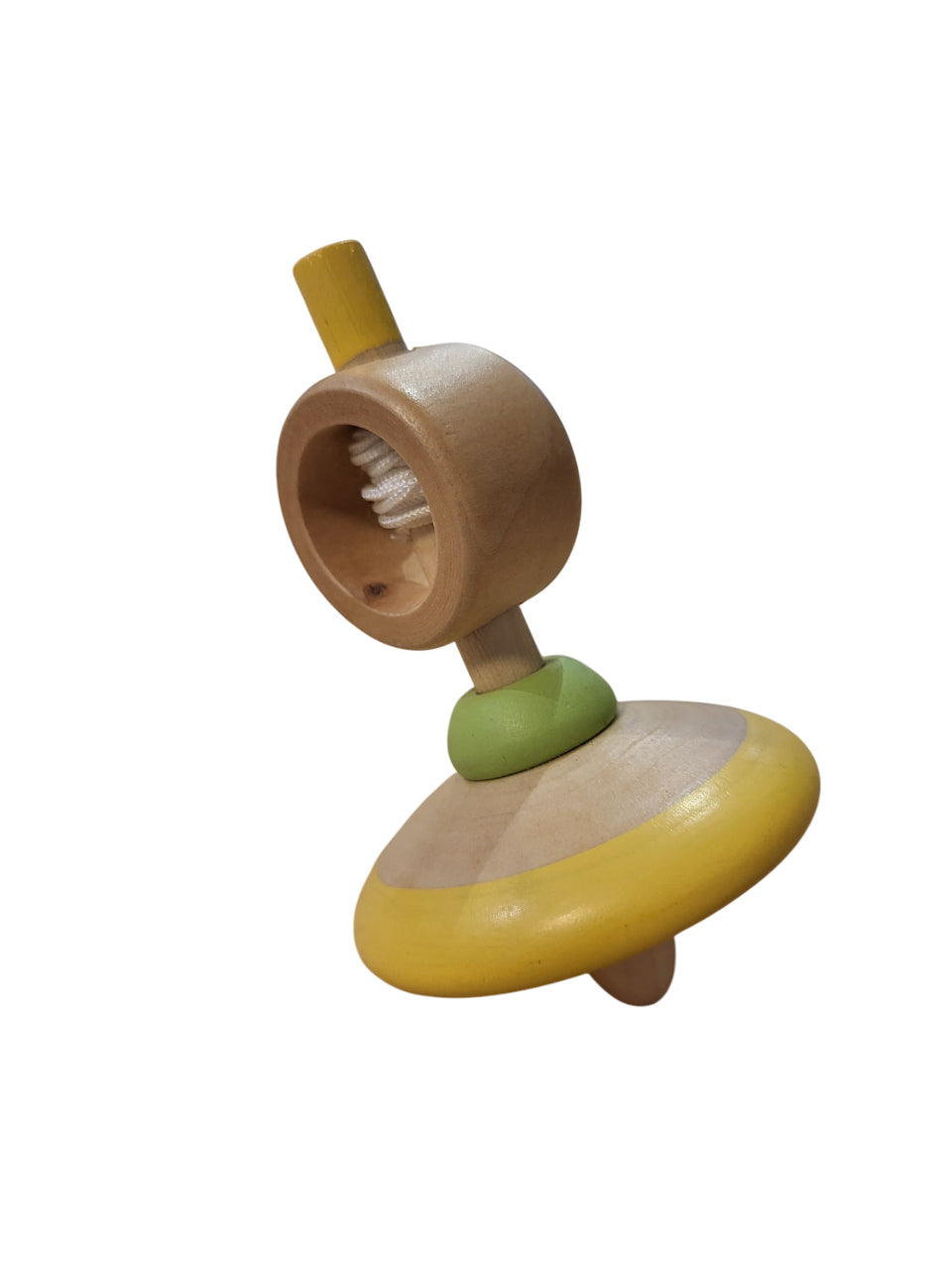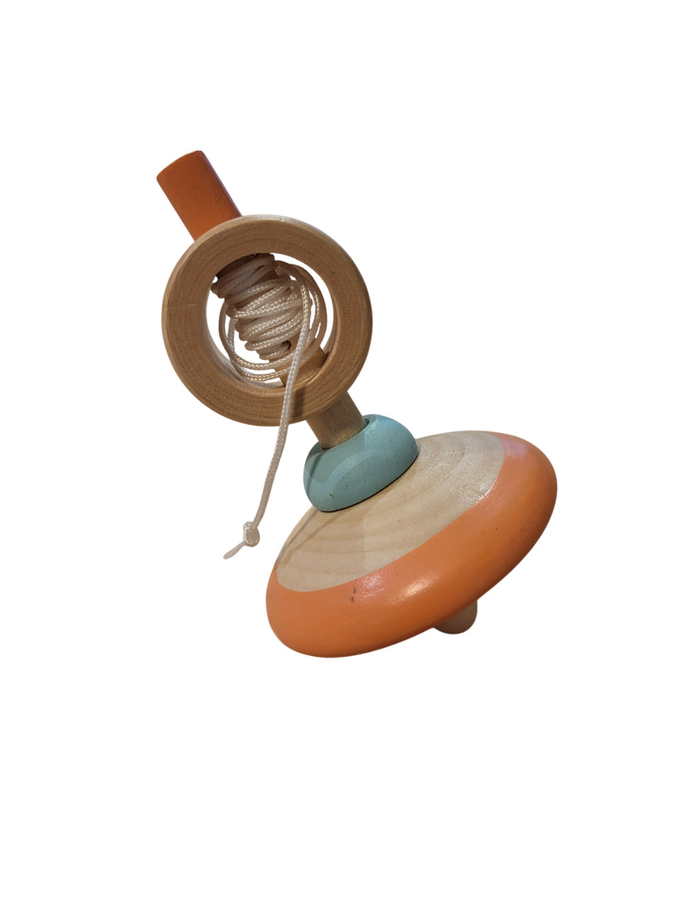 Peonza de madera con cuerda en combinación con bonitos colores.
