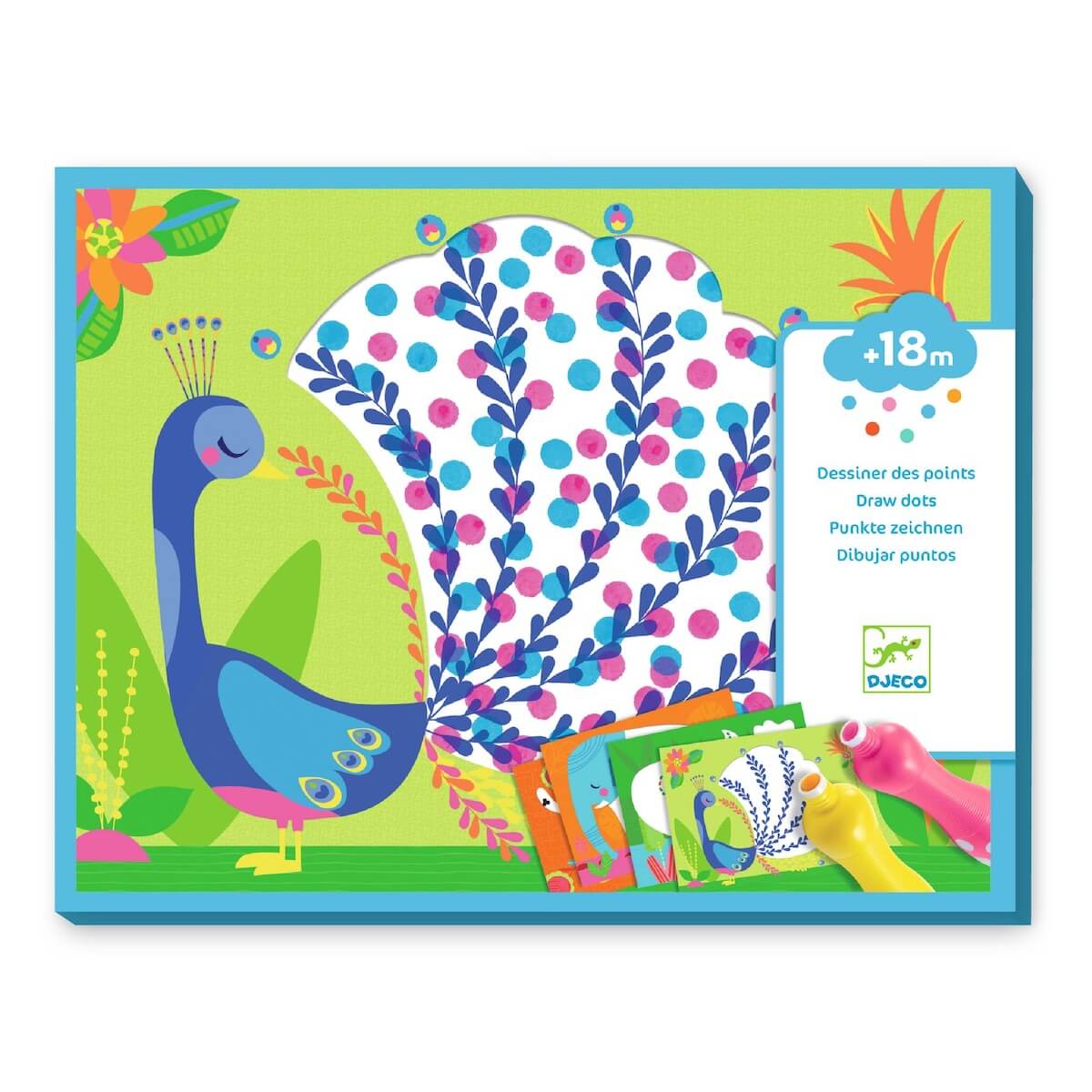 Este set de dibujo a puntos invita a los más pequeños a colorear animales de una forma distinta. Punto tras punto, tu hijo coloreará los cuatro cuadros ilustrados.