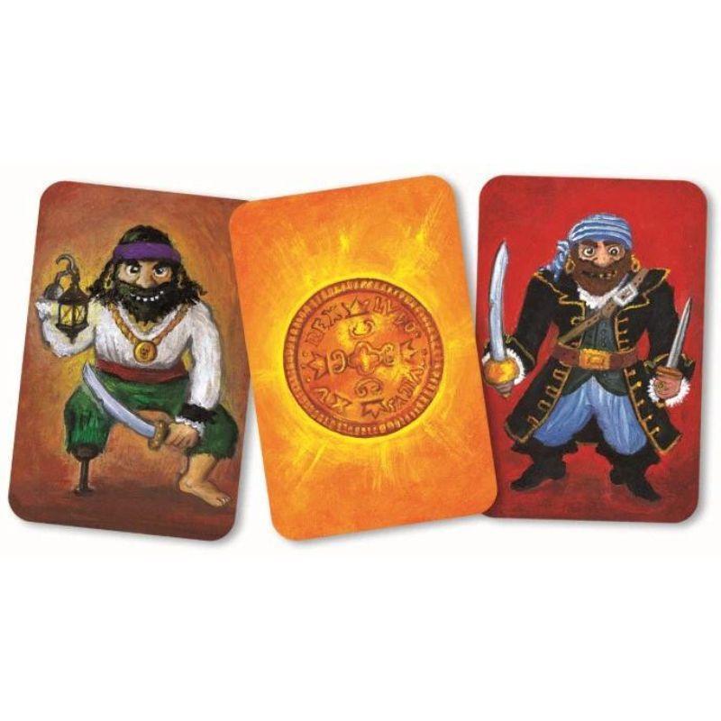 - Cartas piratas: son las únicas que hacen pasar turno. Nos obligan a deshacernos de 3 cartas (ya sean de las acumuladas o si hace falta del propio barco que estamos construyendo).
