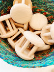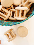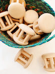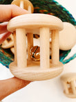 Rodari pequeño de madera con cascabel en en interior para el cesto de los tesoros.