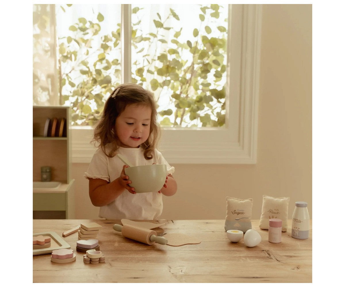 Con este set de repostería de madera, los pequeños pasteleros pueden aprender a preparar deliciosas galletas y pasteles.