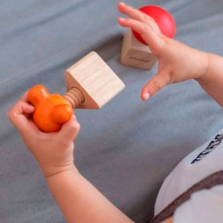 Este sdt de tuercas y tornillos está compuesto por 4 piezas geométricas de diferentes colores combinadas con tuercas de diseño exclusivo para el desarrollo de la destreza de los dedos del niño. Los niños pueden usar los 5 dedos o solo algunos para girar la tuerca. O girar la perilla usando la palma o los dedos.